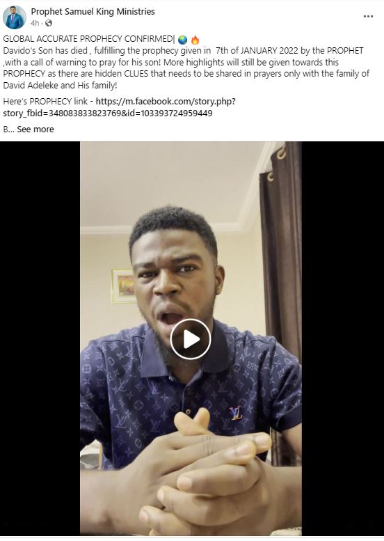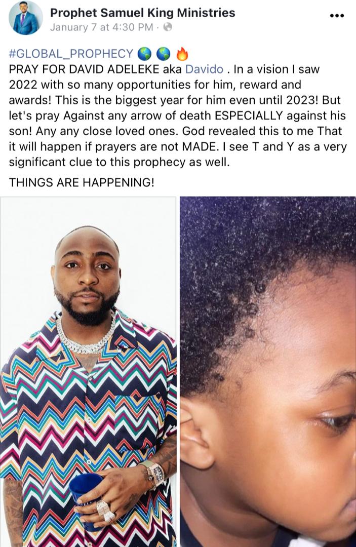 “There’s still a second part to the prophecy” – Pastor who predicted Davido’s son, Ifeanyi’s death in a Facebook post in January speaks (Video)